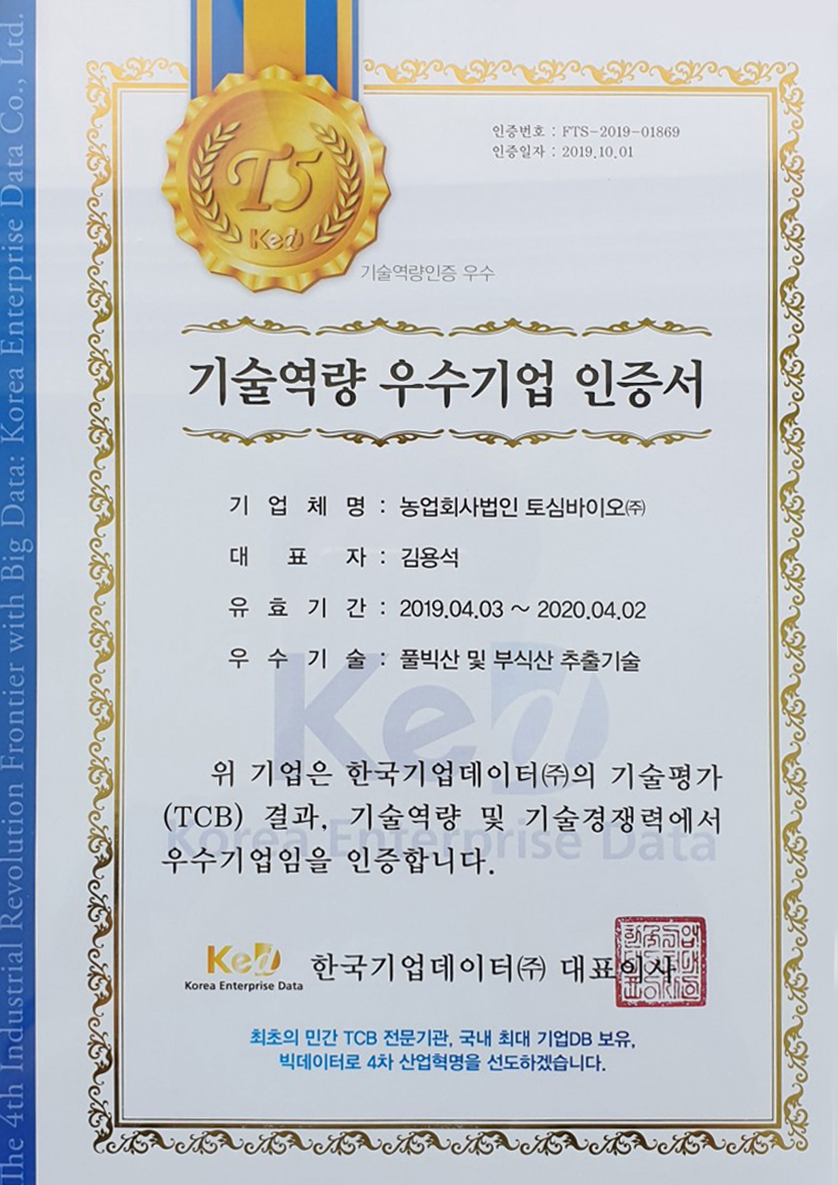 ³ó¾÷ȸ»ç¹ýÀÎ Åä½É¹ÙÀÌ¿À(ÁÖ)´Â 2016³â ⸳ ÈÄ, ģȯ°æ õ¿¬¹°ÁúÀ» ÃßÃâ¤ýÀ¶ÇÕÇÏ´Â ±â¼úÀ» ±â¹ÝÀ¸·Î ȯ°æ°³¼±Á¦, Åä¾ç°³·®Á¦, ÀÛ¹° »ýÀ°Á¦ µîÀ» °³¹ßÇÏ¿© °íǰÁú, °í±â´É¼º ³ó¤ýÃà»ê¹°À» »ý»êÇÒ ¼ö ÀÖ´Â °æÀï·ÂÀ» È®º¸Çϰí, ¾Æ¿ï·¯ ¿Â½Ç°¡½º Àú°¨À» ÅëÇÑ Åº¼Ò¹èÃâ±Ç µî·ÏÀ» ¸ñÇ¥·Î ±âÈĺ¯È¿Í Áö±¸¿Â³È¿¡ ´ëÀÀÇÏ´Â, ȯ°æÀ» ÃÖ¿ì¼±À¸·Î ÁöÄѰ¡´Â SolutionÀ» Á¦°øÇϴ ģȯ°æ ´ëÇ¥±â¾÷À¸·Î¼ÀÇ À̹ÌÁö¸¦ Áö¼ÓÀûÀ¸·Î ¸¸µé¾î °¡´Â ¹ÙÀÌ¿À º¥Ã³±â¾÷ÀÔ´Ï´Ù.